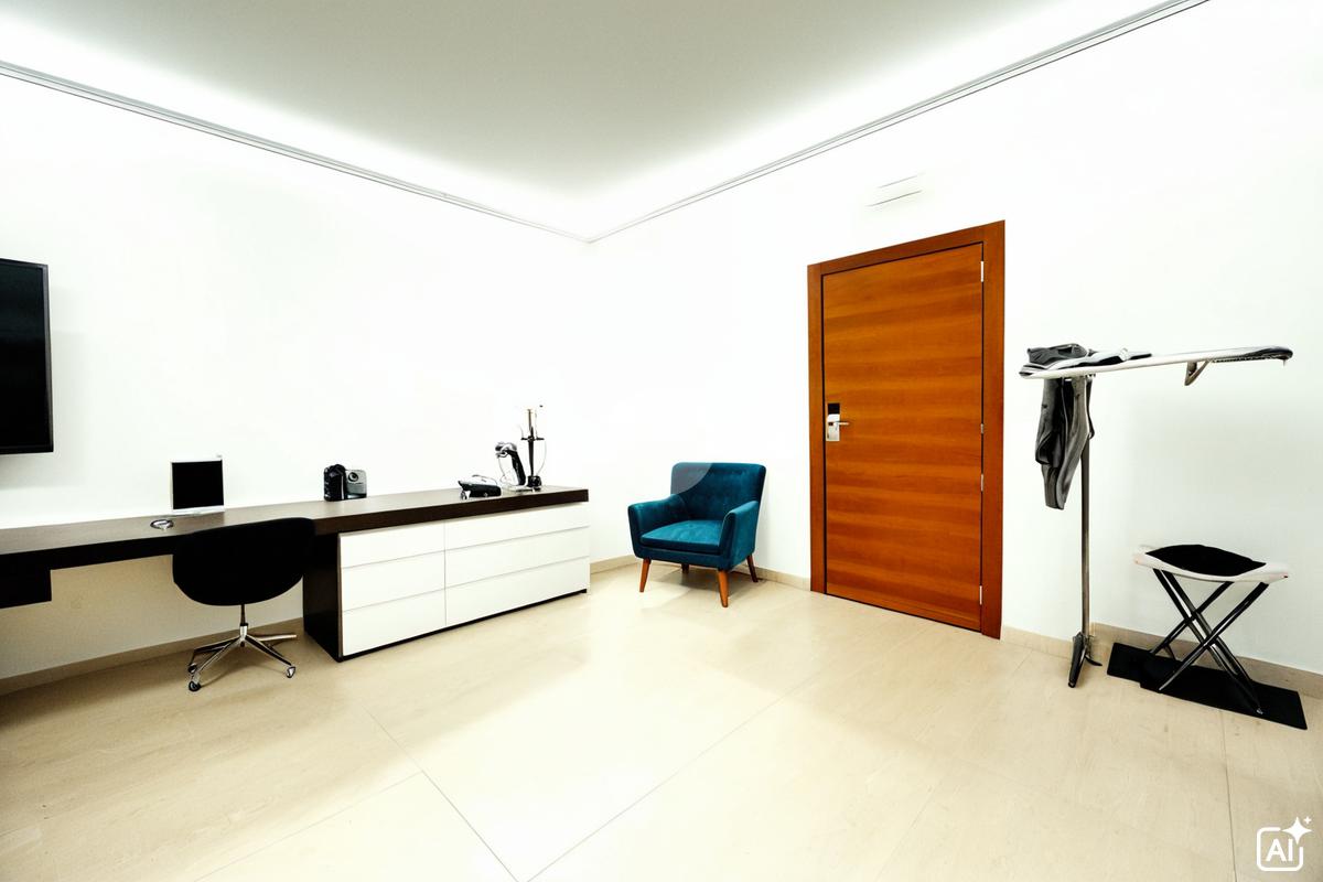 L’ingresso introduce a una elegante area reception che distribuisce in modo razionale sei camere ampie e luminose, tutte dotate di bagno privato. Una delle camere gode inoltre di un splendido terrazzo a livello, elemento raro e di grande valore.